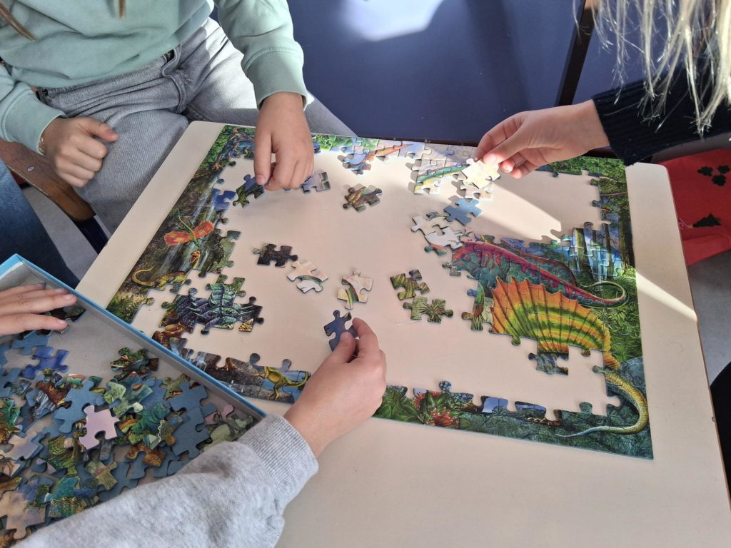 Durant la pause méridienne, les élèves de CM1 et CM2 peuvent participer à des activités qui favorisent la coopération entre élèves. Les activités Mathématiques / Puzzles permettent une approche collaborative car, dans un groupe, chaque élève détient des pièces indispensables à une réalisation collective.