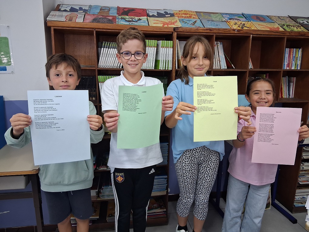 Les élèves du Primaire qui le souhaitent peuvent apporter des poésies au CDI afin de se retrouver pour des moments de lecture expressive et de partage poétique, portés par l’émotion et la découverte.